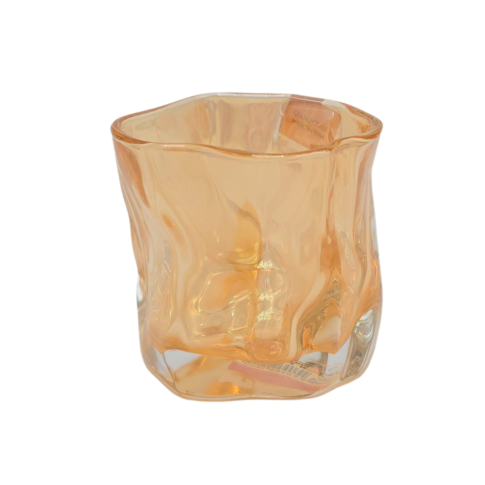 Kit de 6 copos baixos em vidro com efeito amassado cor âmbar