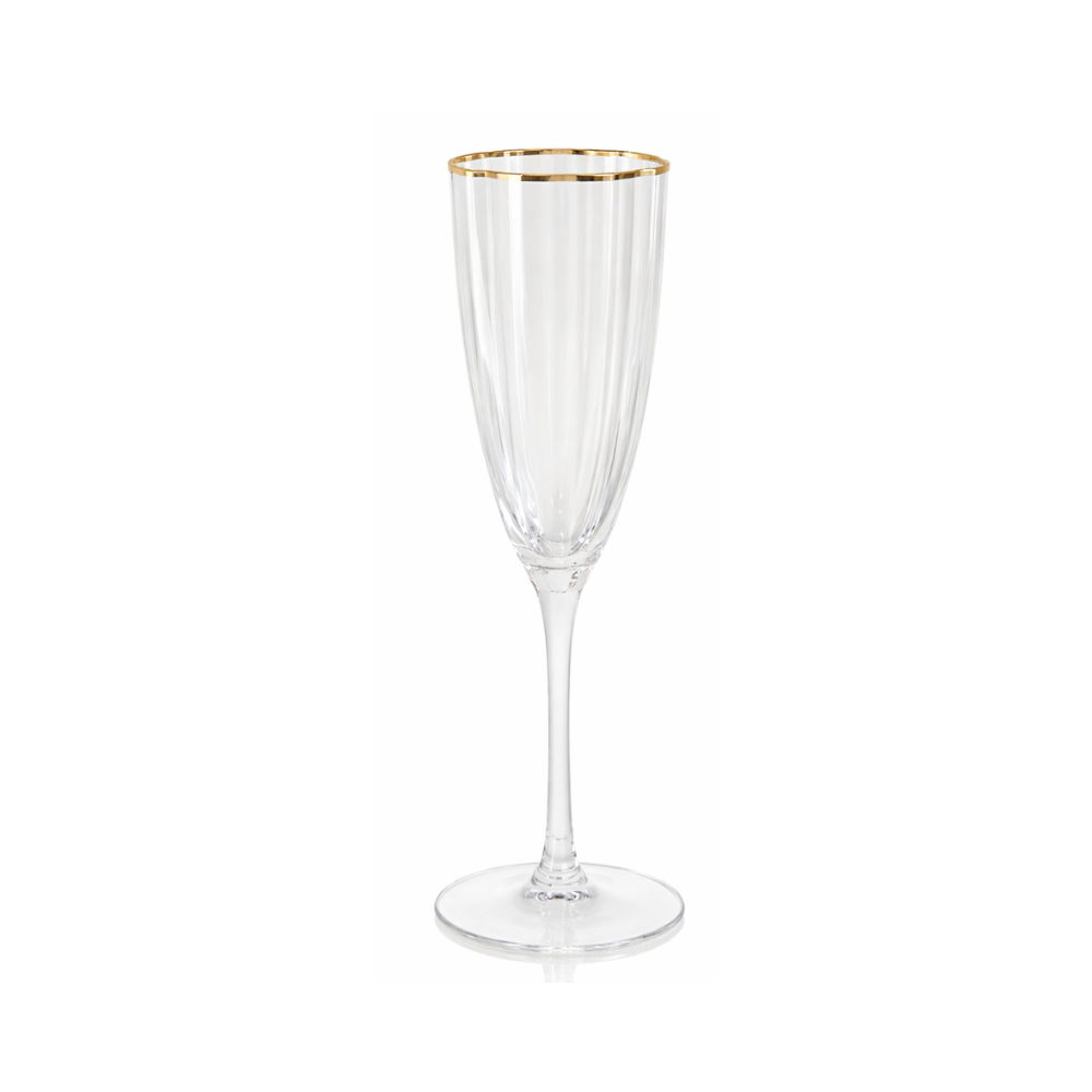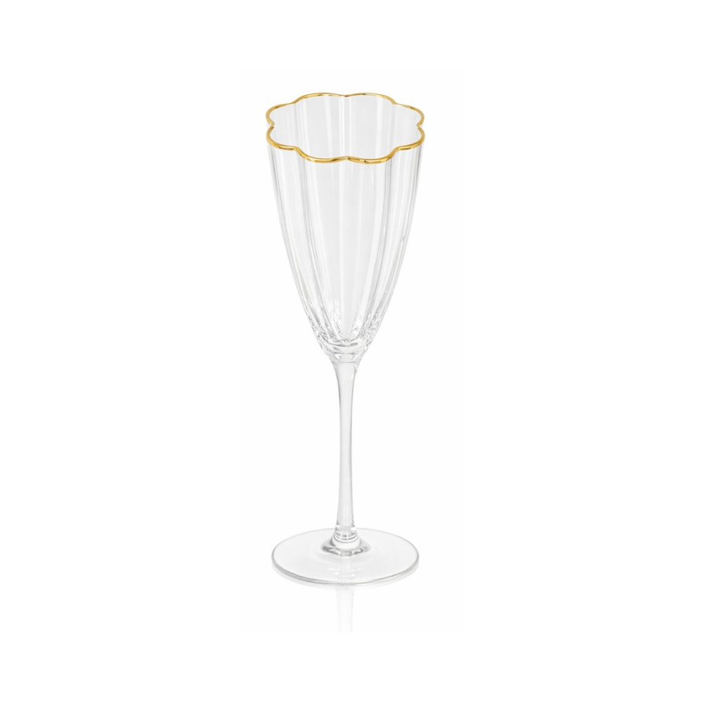 Kit de 6 taças de espumante em vidro em formato de flor e borda com pintura dourada