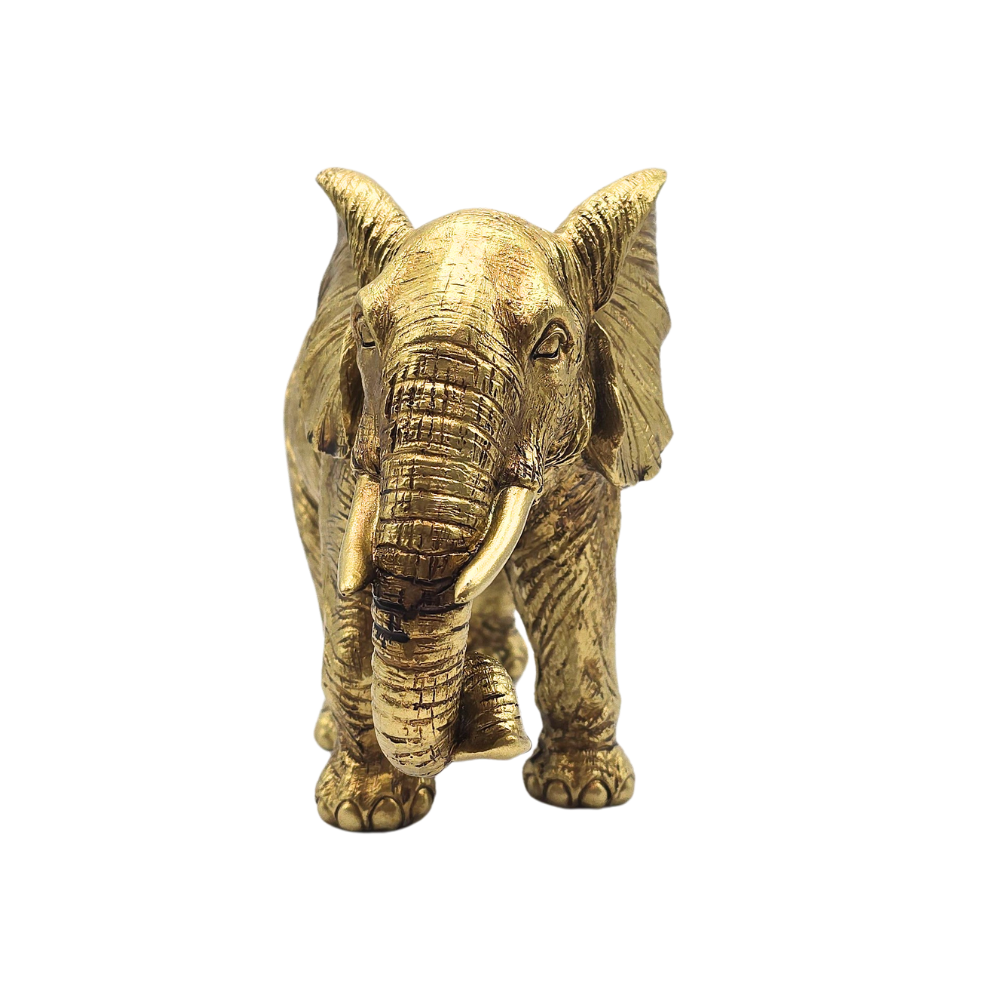 Escultura de elefante feito em poliresina com pintura dourada