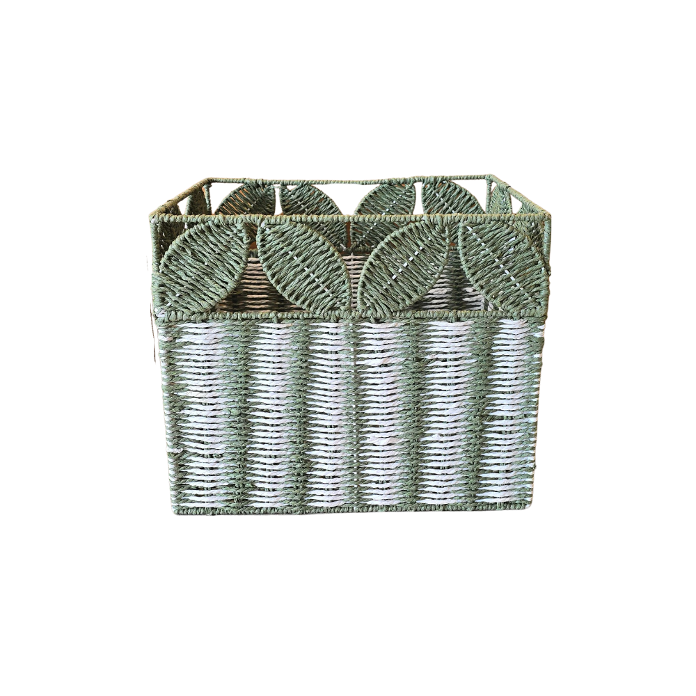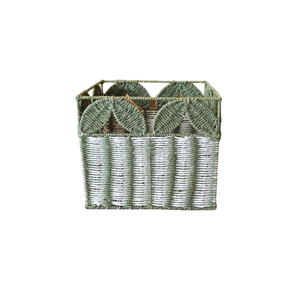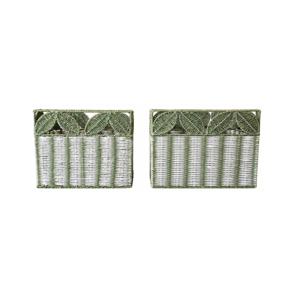 Kit com 2 cestos feitos em corda de papel trançado e tingido de branco e verde sálvia