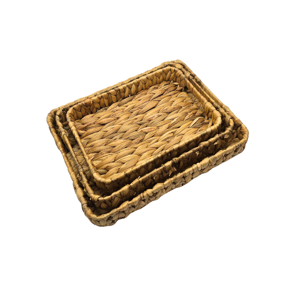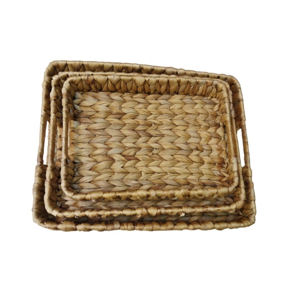 Kit de três bandejas em fibra natural tramada (seagrass)