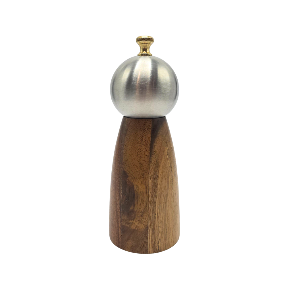 Moedor de temperos em madeira maciça acácia e tampa em aço inox prateado
