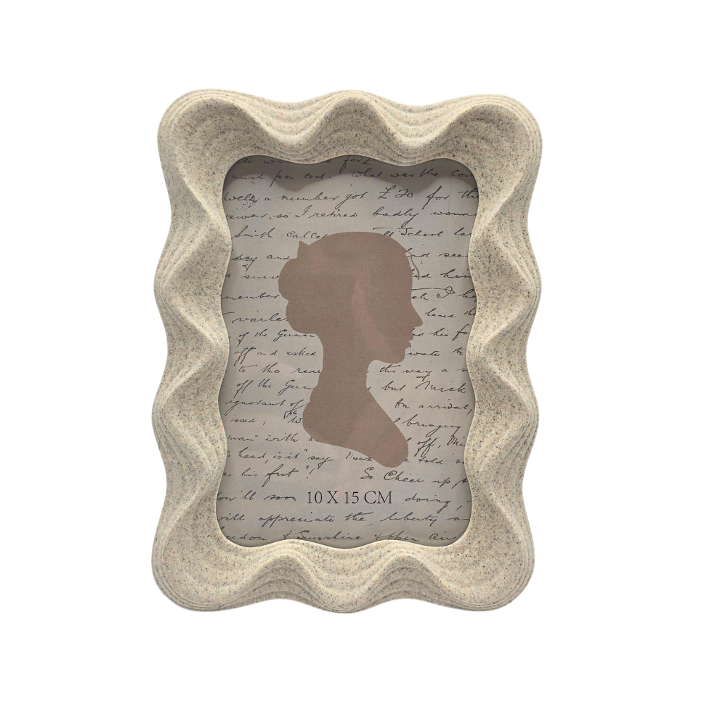 Porta retrato para foto 10x15cm feito em poliresina bege