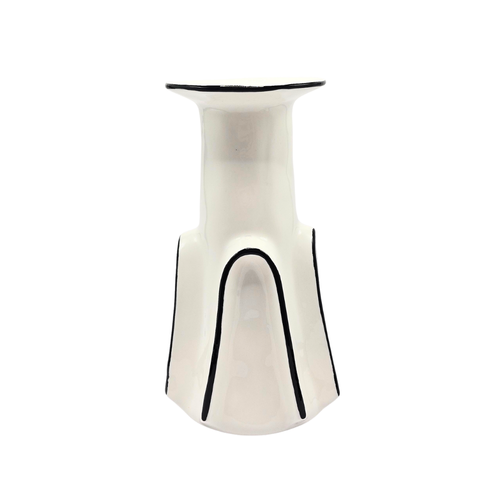 Vaso em cerâmica branca com desenhos em azul marinho