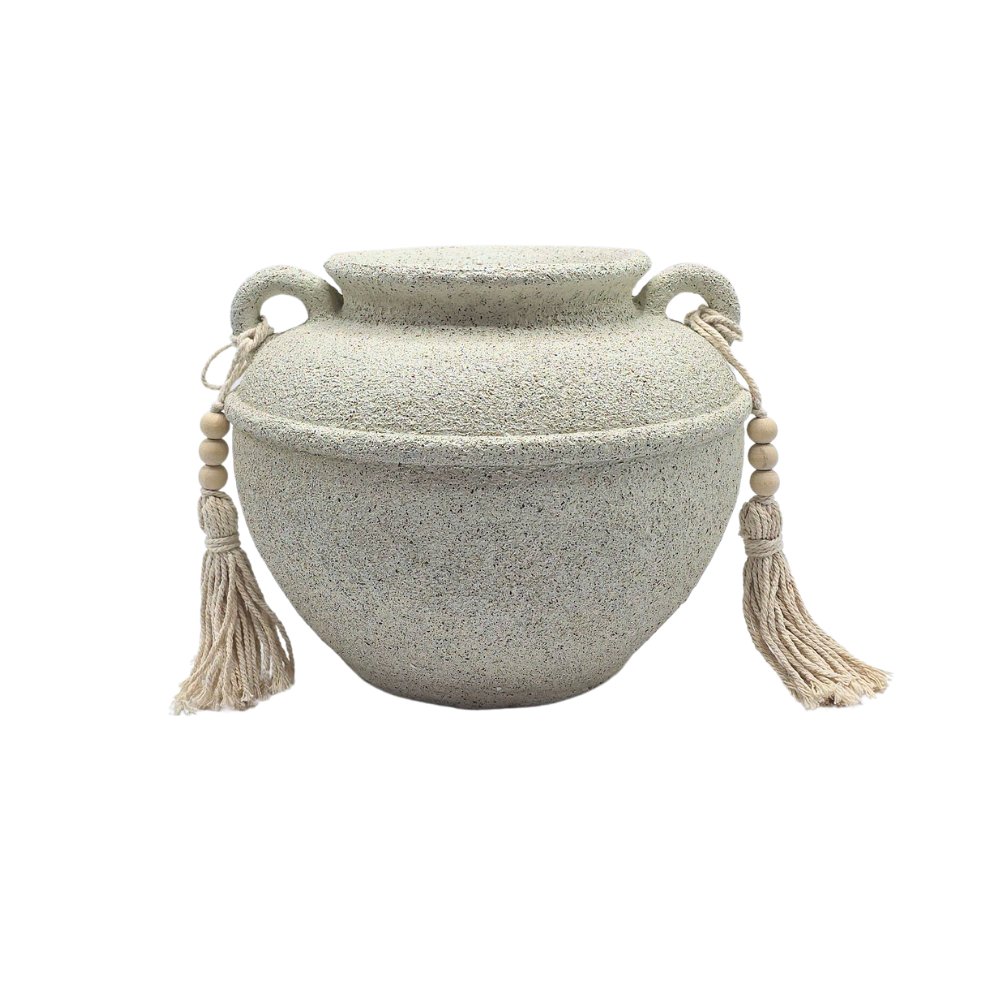 Vaso texturizado em poliresina cor bege